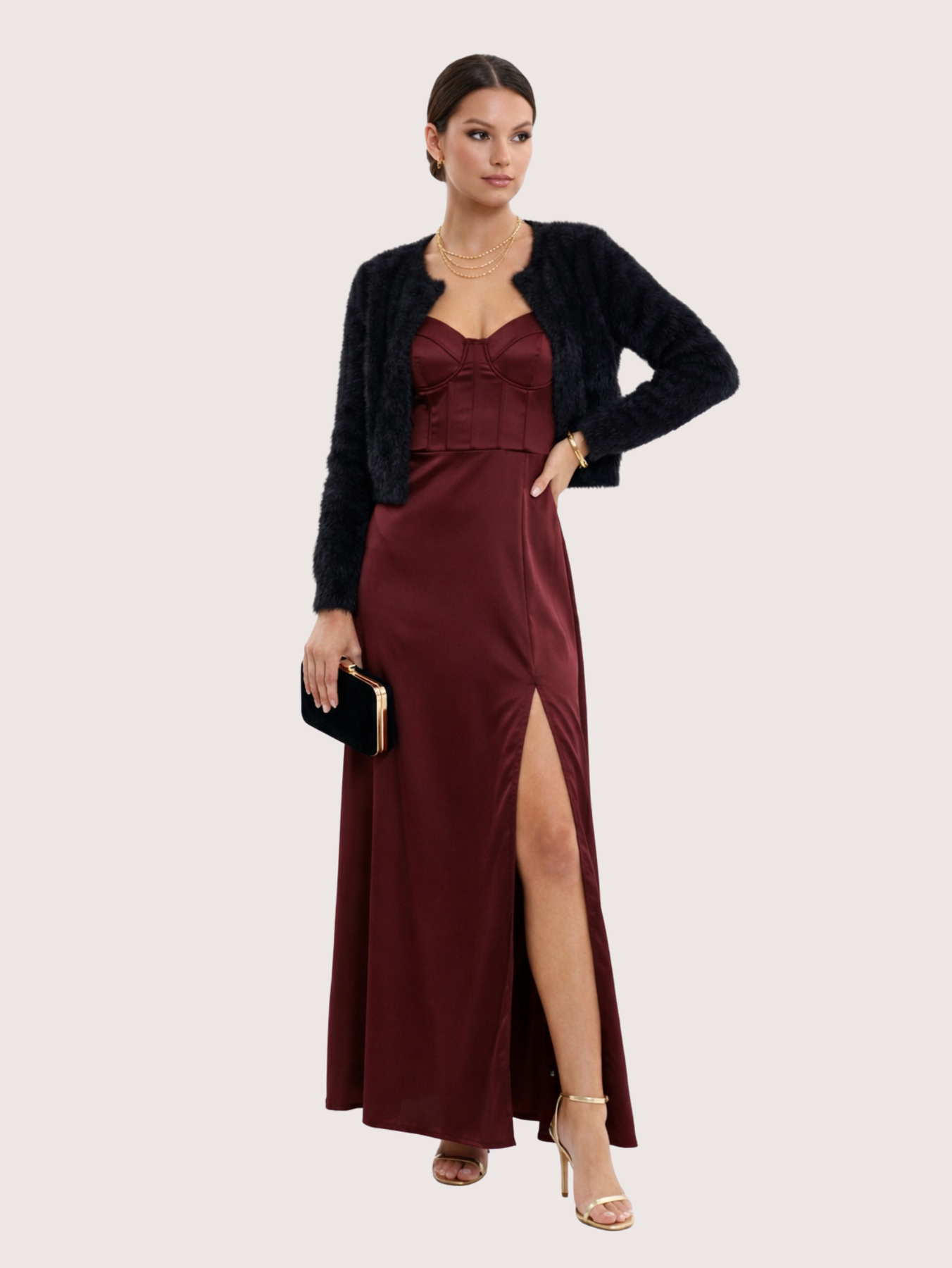 Este saquito corto es una prenda perfecta para complementar looks elegantes y femeninos. Está confeccionado en un tejido suave, con una textura similar al pelo sintético o mohair, lo que le aporta un aire lujoso y acogedor. Con mangas largas y una silueta ajustada al cuerpo, terminando justo por encima de la cintura para estilizar la figura. El escote es redondeado y sin botones, lo que permite un ajuste abierto y fluido, ideal para superponer sobre vestidos o tops. La modelo esta usando Talle 1.