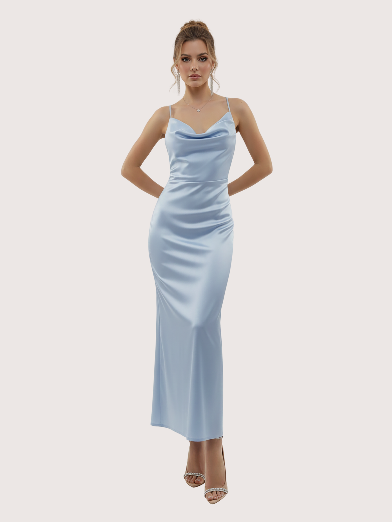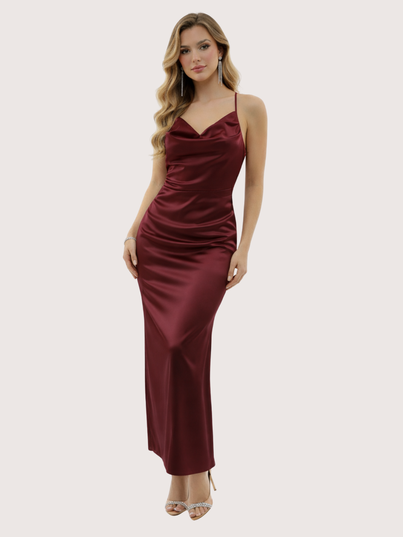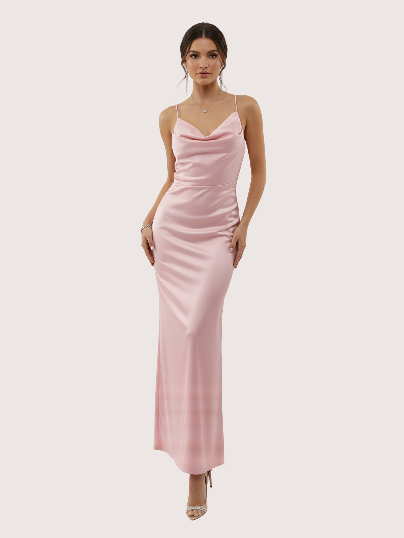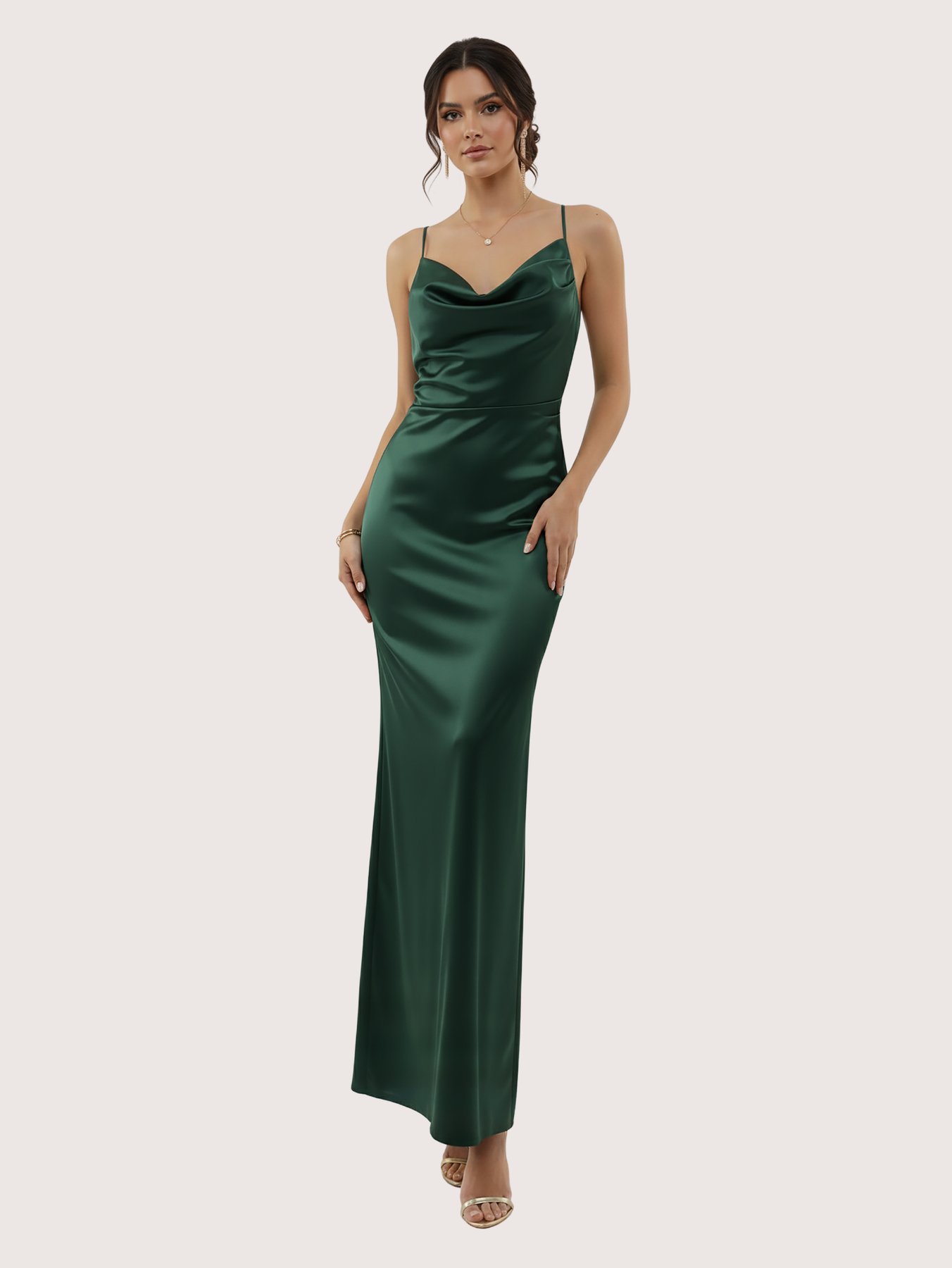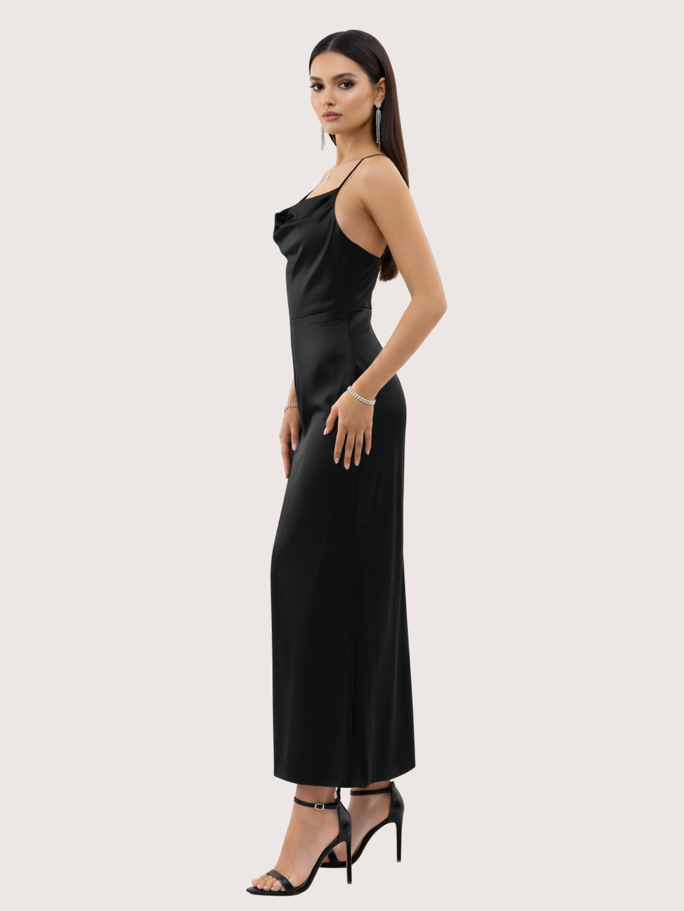 Irradia sofisticación con este deslumbrante vestido de noche, confeccionado en un lujoso tejido satinado. El diseño presenta un elegante escote con tirantes finos y un corpiño estructurado que estiliza la figura. Ideal para galas, bodas o cualquier evento formal, este vestido se combina a la perfección con tacones y accesorios minimalistas para lograr un look inolvidable. La modelo esta usando Talle 1.
