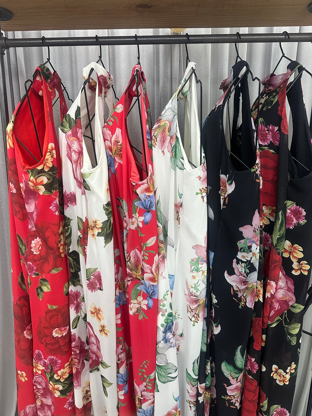 Vestido de gasa estampada floreada de excelente calidad. Es un corte amplio con forma de gota en la espalda y botòn en cuello, confeccionado con una tela fresca y una caida fluida. perfecto para los dìas y noches de verano.