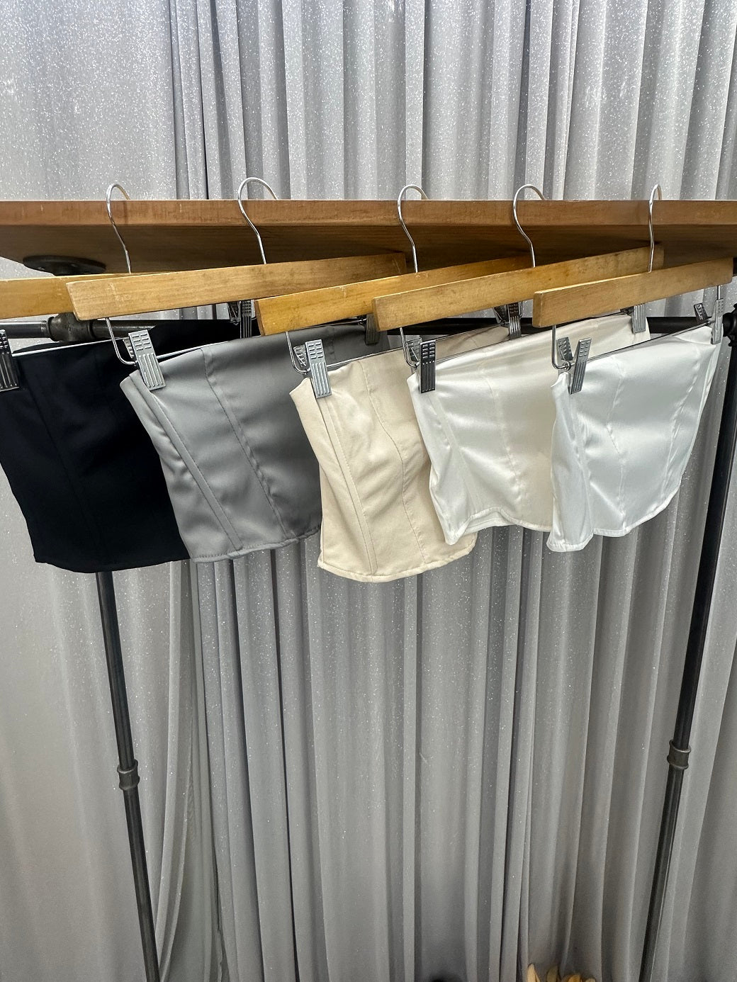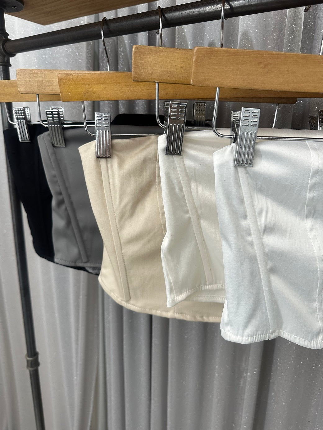 Corset de bengalina elastizada con ballenas y forro. La modelo está usando un Talle 1 y tiene 90 de contorno de busto.